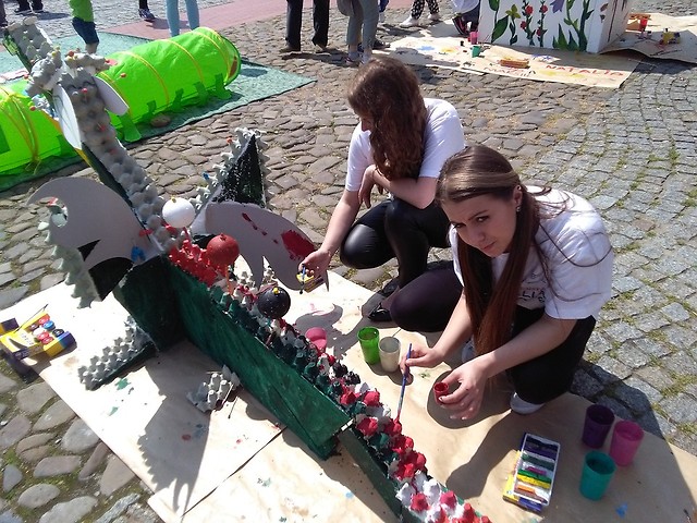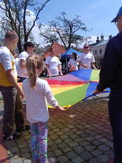 Przemarsz studentów rozpoczął się od budynku RCKP i prowadził przez miasto, aż na rynek, gdzie Rektor Uczelni przekazał studentom klucze do miasta. Jak pisano powyżej, a co potwierdza zamieszczona dokumentacja fotograficzna studenci pedagogiki przybyli licznie na juwenalia. Pięknie prezentowali kulturę studencką oraz własne kompetencje nauczycielskie i pedagogiczne. Ozdobione parasole napisami, uszkami, kwiatami niesione przez naszych studentów oraz skandowanie hasła pedagogika wyraźnie sygnalizowało, że studenci przejeli rządy w mieście. Także w sobotę 21 maja rynek miasta tetnił życiem. Studenci pedagogiki tradycyjnie zorganizowali cieszące się niesłabnącą popularnością stoisko dla dzieci, na którym zagościł smok jedzący makarony oraz kwiatkowy domek. Dzieci mogły puszczać tęczowe, gigantyczne bańki mydlane, bawić się hustą, wędrować w tunelu, a nawet malować stopami, butami, gąbką. Było wspaniale. Obok studenci z koła naukowego przygotowali punkt dla drużyn walczących w gonitwie, a na scenie występował zespół śpiewając hit pedagogika. Studentom pomocy udzielili: mgr Halian Zaforemska - twórczy plastyczny umysł, mgr Julita Karaś - Klimek czuwająca nad drucikami i makaronami, mgr Magdalena Goleń i Małgorzata Wójcik - pracując ze studentami z koła naukowego, dr Janusz Boczar - muzycznie na scenie, dr Łucja Reczek-Zymróz - prowadząc korowód parasoli oraz dr Barbara Lulek. Wszytskim studentom i pracownikom gratulujemy!!! Była wspaniała atmosfera budowana przez wspólnotę studentów i ich nauczycieli działajacyh razem na rzecz społeczności miasta.