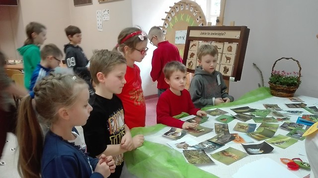 dogoterapią oraz szkoleniem psów. Nad przebiegiem zajęć czuwała Pani mgr Magdalena Goleń. Po oficjalnym powitaniu "małych studentów" i ich rodziców, rozpoczęła się gra dydaktyczna, polegająca na tym , że uczestnicy zajęć, wyposażeni w mapy do gry, odwiedzali różne stanowiska przyrodnicze, w których poszerzali swoją wiedzę, rozwiązując zagadki i odpowiadając na wylosowane pytania.. Stanowiska były interesujące, a pytania różnorodne, o różnym stopniu trudności. Dzieci doskonaliły wiedzę z "Ornitologii": rozpoznawały ptaki, odróżniały ich głosy, jaja i pióra. Stanowisko z "Tropami" dawało im wiele radości. To tam dowiedziały się, że zwięrzece ślady są różnej wielkości i kształtu. Po poprawnym rozpoznaniu tropów, dzieci wykonywały z masy solnej trop, który najbardziej je zaciekawił. "Zagadkownica Leśna" – sprawdzała wiedzę ogólną o przyrodzie uczestników. Dzieci pod kierunkiem studentek tworzyły także "Łańcuchy pokarmowe zwierząt". Tworzyły je spośród wielu zwierząt, a studentki sprawdzały poprawność wykonania zadania oraz udzielały im informacji o zwierzętach. Podczas "Grzybobrania" uczniowie rozpoznawali grzyby jadalne i niejadalne występujące na naszym terenie. Dzieci trafiły też do "lasu" , a tam na stanowisku "Warstwy lasu" dowiedziały się jakie rośliny rosną w każdej z nich i jakie zamieszkują je zwierzęta. Ten - kto odwiedza często las nie miał problemu z odpowiedzią na pytania dotyczące lasu. W czasie pokonywania stacji gry dydaktycznej, dzieci miały też możliwość rozpoznawania odgłosów "Całego lasu", a nie było to łatwe zadanie. O lasy dbają leśnicy. Uczestnicy gry poznali także ich pracę. Przekonali się jak bardzo jest ciężka oraz o tym, że wymaga dużej wiedzy przyrodniczej. Niewątpliwą atrakcją zajęć była prelekcja treserki psów Pani Sylwii i spotkanie z psami Rayą i Szinuką, dla których dzieci "gotowały" pyszne dania. Starsze dzieci rozpoznawały rasy psów, dowiedziały się o ich potrzebach, oraz o tym dlaczego nie należy wspierać pseudohodowli, a warto zainteresować się adopcją psów. Wszystkie dzieci miały także możliwość przeprowadzenia "tresury psów", wydając im różne komendy . Po zdobyciu wszystkich punktów ma mapie i ukończeniu gry dydaktycznej, uczestnicy udawali się po wpisy do indeksów oraz otrzymywali drobne upominki od Uczelni.