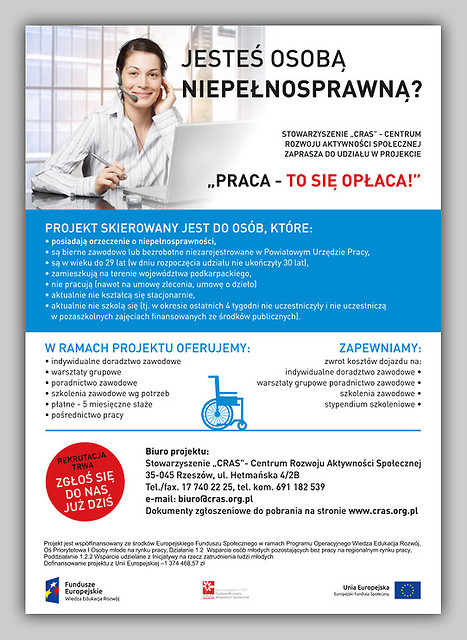 Druga tura rekrutacji do projektu skierowana jest przede wszystkim do Osób Niepełnosprawnych, do 29.r.ż., które nie uczestniczą w kształceniu i szkoleniu, pozostają bez zatrudnienia, niezarejestrowane w Urzędach Pracy z terenu woj. podkarpackiego.
