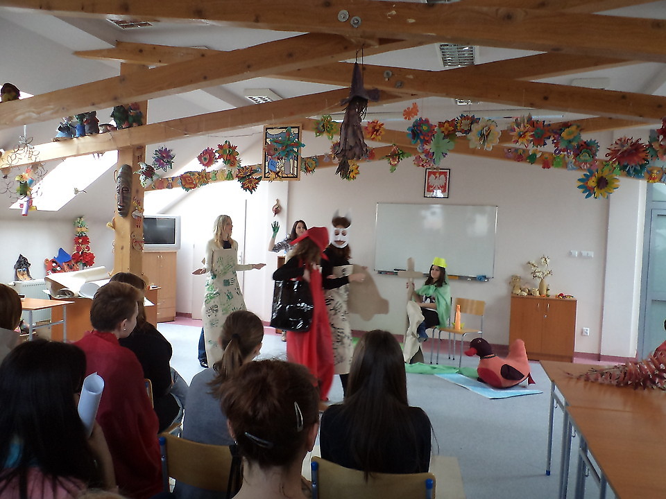 W ramach Tygodnia Akademickiego odbyły się warsztaty teatralne dla młodzieży szkół średnich i studentów zatytułowane "O Czerwonym Kapturku nietypowo". Zajęcia poprowadziła dr Łucja Reczek-Zymróz. Dopisali uczestnicy i w sali 21 obserwować można było popisy teatralne uczestników warsztatów. Okazało się, że wilk może być zakochany, komediowy lub jeszcze bardziej przerażający niż zwykle. Uczestnicy warsztatów wykonali samodzielnie stroje z przygotowanych materiałów krawieckich i papieru.