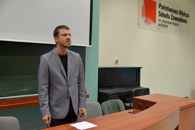 Tematyka projekcji została dobrana nieprzypadkowo. W PWSZ Krosno zorganizowana została w ostatnich tygodniach międzynarodowa konferencja poświęcona Herlingowi-Grudzińskiemu wraz z wystawą książek w murach Biblioteki PWSZ.