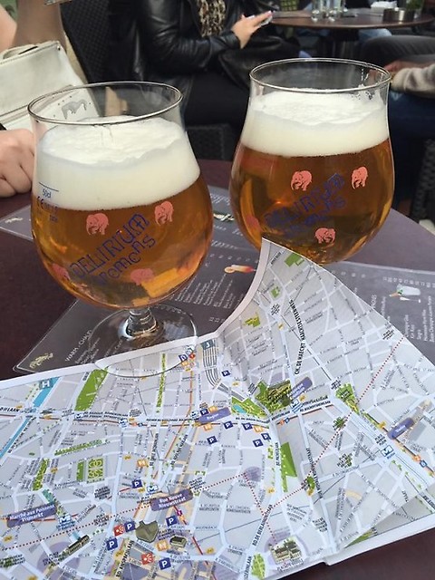Jako, że czas naszego pobytu mijał nieubłagalnie tego wieczoru postanowiłyśmy również spróbować belgijskiego piwa, co oczywiście jest punktem obowiązkowym podczas pobytu w tym kraju. Nasz wybór padł na Délirium Café, chyba najsłynniejszy pub na świecie. W 2004 roku został on wpisany do Księgi Rekordów Guinnessa za posiadanie 2004 marek piw w sprzedaży z ponad 60 krajów. Było w czym wybierać. Wybór większości padł na piwo o smaku kaktusowym i charakterystyczne dla tego miejsca Délirium Tremens.