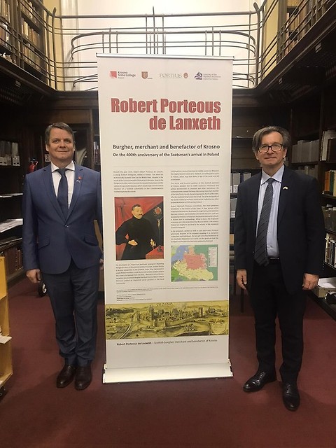 23 stycznia 2020 roku JM Rektor prof. Grzegorz Przebinda i prof. Władysław Witalisz wzięli udział w otwarciu wystawy o Robercie Portiusie w Centralnej Bibliotece w Edynburgu, stolicy Szkocji. To już trzeci etap podróży tej wystawy, przygotowanej przez Uczelnię w Krośnie we współpracy ze szkockim University of the Highlands and Islands, Wydziałem Filologicznym Uniwersytetu Jagiellońskiego oraz Stowarzyszeniem Portius. W 2019 roku z historią krośnieńskiego Szkota – opowiedzianą na sześciu panelach wystawowych – mogli się zapoznać mieszkańcy Inverness i Aberdeen.