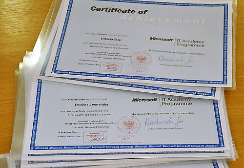 W dniu 18 czerwca 2010 roku o godz. 14-tej w Sali 108 PWSZ Krosno -Turaszówka odbyło się wręczenie pierwszych Certyfikatów informatycznych w ramach IT Academy Microsoft.